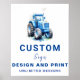 Affiche Bleu Tracteur personnalisé Signal d'anniversaire