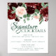 Garland floral aquarelle sophistiquée "Signature Cocktails" menu de boisson réception, fête ou signalisation de douche avec marsala bordeaux et tête-de-lit rose vif peinte à la main avec des fleurs d'accent bleu marine agrémentées de laurier botanique et de rouge foncé. De la collection "Boho Bloom", cette disposition intègre de riches fleurs sauvages bohèmes aux fleurs éclatantes et au feuillage vert d'eucalyptus. Pour d'autres couleurs ou produits correspondants, veuillez visiter le magasin JustFharryn Zazzle, ou contacter le concepteur, c/o Fharryn@yahoo.com Tous droits réservés. #bohochic #zazzlemade