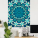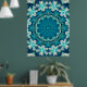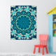 Affiche Blue Aqua Mandala Rosette Retro Hippie