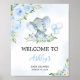 Affiche Blue Balloon Floral Elephant Bienvenue