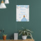 Ce panneau de bienvenue élégant et glamour pour la fête d'anniversaire d'hiver présente une belle princesse aux cheveux blonds et à la peau claire dans une robe bleue. Le texte combine écriture manuscrite et polices sans serif modernes pour un look élégant et sophistiqué. Les compositions florales, les flocons de neige et les confettis argentés créent un mélange parfait de rustique et de chic. Graphiques par www.etsy.com/uk/shop/SunflowerDayLove