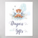 Affiche Blue Boy Teddy Bear Baby shower Diapers & Cadeau