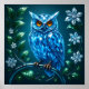This image depicts a majestic owl with brilliant cristall for feathers, perched on a blue metallic branch in an cristall and metallic garden. It features art nouveau influences.
