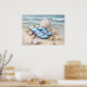Affiche Blue Flip Flops Seashells Coastal Beach Summer Art