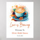 L'amour brasse le thème de la Fête des mariées - Blue Floral L'amour brasse l'Affiche de bienvenue de la Fête des mariées de café!