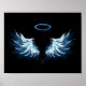 Light, artistique, blue angel wings on a black background. Angel wings.