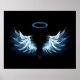 Affiche Blue Glowing Angel Wings on black background