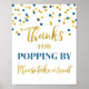 Merci pour le popping par pop-corn bar signe pour baby shower, douche nuptiale, fête d'anniversaire ou mariage en bleu marine et motif confetti or.