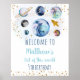 Bienvenue à vos invités de fête avec une adorable enseigne personnalisée. Encadrez le panneau et affichez-le sur une table près de l'entrée ou montez l'affiche en mousse et montez-le à l'extérieur sur un chevalet. Ce design adorable présente des planètes colorées avec des étoiles en feuille d'or.