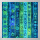 Bring rich color and rhythmic movement into your space with this striking blue and green boho stripe watercolor design. Layered vertical bands are filled with hand-painted botanical motifs, organic symbols, and folk-inspired patterning, creating a visually dynamic composition that feels both modern and artisan-crafted.