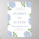 Affiche Blue Hydrangea Classic Border, XL Wedding Welcome