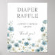 Affiche Blue Preppy Flowers Watercolor Diaper Raffle Sign