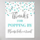 Merci pour le popping par pop-corn bar signe pour baby shower, douche nuptiale, fête d'anniversaire ou mariage en bleu clair et argent confetti motif. Veuillez noter que l'effet de parties scintillant n'est que photographique.