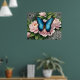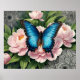 Affiche Blue Swallowtail Butterfly With Peonies Floral Art