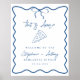 Célébrez l’amour et la pizza avec cette affiche de dîner de comédie That’s Amore! Conçu avec un arrière - plan blanc immaculé et une bordure bleu ondulé ludique, ce panneau présente un élégant texte bleu, une illustration de l'arc sucré en haut, et un graphisme amusant en tranches de pizza. Personnalisé avec les noms et la date de l’événement de la mariée et du marié, c’est la façon idéale d’accueillir les invités à votre dîner de répétition sur le thème de la pizza. Ce design allie un style mariage romantique au charme léger, idéal pour les couples qui souhaitent que leur célébration pré-mariage soit joyeuse, amusante et mémorable.