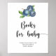 Carte d'invitation baby shower mignonne avec aquarelle illustrant les bleuets. Le texte dit "un bébé doux aux baies est en route." Éléments correspondants disponibles.