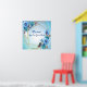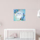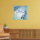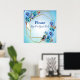 Bouquets de fleurs de Cornouailles bleues à l'aquarelle avec bourgeons rouges et feuilles verts dorés sur un mélange créatif d'un arrière - plan bleu turquoise drapé autour d'un cadre géométrique doré scintillant à personnaliser pour guider votre invité à votre livre d'hôtes.