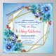 Cadres d'or géométrique décoré d'un bouquet de fleurs de Cornouailles bleues à l'aquarelle avec des bourgeons rouges et des feuilles verts dorés pour personnaliser. Ce design stationnaire moderne est parfait pour toute célébration en plein air dans un jardin d'été comme pour un mariage.