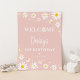 Ce panneau de bienvenue présente des fleurs de marguerite blanc boho sur un arrière - plan rose pâle et doux, créant un design délicat mais sophistiqué qui est parfait pour accueillir vos invités. Que ce soit pour un anniversaire d'inspiration bohème, ou simplement pour un design élégant et élégant, cette enseigne de décoration impressionne vos invités. Cliquez sur le bouton "customiser plus loin" si vous souhaitez réorganiser et formater le style et le placement du texte.