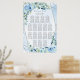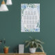 Cette affiche de l'eucalyptus à fleurs bleues et argentées Boho est l'ajout parfait à toute cérémonie mariage. L'affiche présente une belle et complexe conception de motifs floraux bleus, de délicats feuilles d'eucalyptus et d'élégants accents argentés. La combinaison de ces éléments crée une esthétique romantique et fantaisiste qui impressionne vos invités. Les tons bleus doux apportent une atmosphère calme et sereine, tandis que les touches argentées apportent une touche de glamour et de sophistication. La disposition du tableau de bord est claire et facile à lire, ce qui permet aux clients de trouver facilement les tables qui leur sont attribuées. L'élégante typographie ajoute une touche de classe et de luxe à l'ensemble du design. Que vous planifiez un petit rassemblement intime ou une grande et somptueuse aventure, cette affiche de tableau de bord ajoutera une touche d'élégance et de charme à votre journée spéciale. C'est la façon idéale de guider vos invités à leurs sièges et de donner le ton pour une célébration mémorable. Dans l'ensemble, cette affiche d'eucalyptus à fleurs bleu Boho et d'un tableau de sièges argenté est un bel ajout élégant à toute décoration mariage. Vous aurez l'impression d'être à la hauteur de vos invités et de créer un cadre parfait pour votre grand jour.