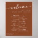 Ce poster de timeline de bienvenue en terre cuite chic et boho do-it-yourself mariage est parfait pour un mariage minimaliste. Le design moderne et bohème orangé terreux présente une calligraphie rustique simple, avec un style unique mais classique. Personnalisez votre panneau de chronologie mariage d'accueil imprimable avec le nom du couple, la date et l'ordre des événements. Choisissez soit une affiche d'accueil imprimée, soit un téléchargement instantané imprimable que vous pouvez imprimer localement en tant que projet do-it-yourself.