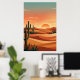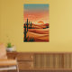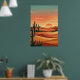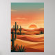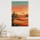 Affiche Boho Desert Sunset Dunes with Cactus & Flying Bird