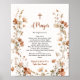 son élégant panneau de prière baptisme est une bénédiction sincère pour une petite fille, encadrée par de doux fleurs sauvages roses poussiéreux et une verdure neutre et terreuse. Une croix délicate et un script de style calligraphie apportent une touche révérencieuse. Idéal pour s'afficher sur un chevalet ou un cadre lors de votre cérémonie de baptême ou réception, ce panneau sert également de joli souvenir pour la famille. Entièrement modifiable et adapté pour les thèmes rustiques, boho ou country-chic.