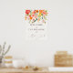 Présentant notre élégante Affiche de bienvenue Boho rustique Floral Design, une belle façon d'accueillir vos invités en arrivant à votre mariage. Ce panneau présente des fleurs colorées peintes à la main dans des tons roses, orange et jaunes, accentuées par des feuilles verdoyants, créant une atmosphère chaleureuse et accueillante. La police script moderne ajoute une touche de sophistication, complétant parfaitement le thème floral romantique.