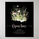 Ce poster de bar ouvert, fleur sauvage de couleur boho, mariage noir et vert, est parfait pour un mariage rustique. Le design est composé de fleurs sauvages roses, roux, jaunes et blancs agrémentés d'élégants bouquets.