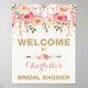 Magnifique enseigne de bienvenue pour fête de mariage bohème avec attrape-rêves floral aquarelle féminin en rose et or