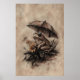Affiche Boho Frog Under Umbrella With Fall Flowers Print