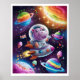 Affiche Boho Illustration Hippopotame dans l'Espace