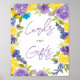 Guidez vos invités avec élégance en utilisant nos cartes à thème "L'amour est en fleurs" et le signe cadeau! Avec des fleurs peintes à la main dans des tons lavande, violet, jaune et bleu vifs, ce panneau ajoute une touche de charme à votre table cadeau. Avec son design intemporel et son élégante police de caractères, il complète magnifiquement votre décor de douche mariage ou nuptiale tout en vous assurant que vos invités savent où laisser leurs désirs et les cadeaux
