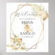 Boho design avec herbes et ventilateurs de palmiers. La palette neutre beige, bronzée et marron se synchronise avec les saisons de fin d'été, d'automne et d'hiver. L'une des idées les plus simples et les plus étonnantes de décoration de boho utilise des herbes géantes et des ventilateurs de palmiers spectaculaires. Cette signalisation est agrémentée d'une perle, de champagne beige, de sienne et d'une palette marron foncé. Personnalisez les noms de texte, la date et l'un quelconque des libellés. Customisez les couleurs et le style des polices, si vous le souhaitez.