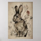 Affiche Boho Rabbit Bunny Flower Print, Rustic Hare