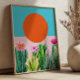 This boho sunset art print blends retro florals with abstract collage elements for a warm, dreamy aesthetic. Vibrant, layered shapes and stylized flowers come together in rich sunset tones, creating a relaxed yet expressive composition. Perfect for bohemian, eclectic, or mid-century inspired interiors, this poster adds color, warmth, and artistic character to any space.