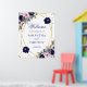 Elégant Boho Aquarelle crème et fleurs bleu foncé et le feuillage d'hiver avec cadre géométrique or