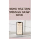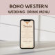 Affiche Boho Western mariage bar menu, boisson mariage Pos