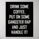 "BOIRE UN PEU DE CAFÉ, METTRE SUR UN PARC DE GANGSTER ET LE GÉRER !" par Monkey Business Graphic Design.