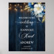 Affiche Bois bleu rustique Blanc Floral Mariage Accueil