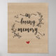 Affiche de mariage vignes rustiques En souvenir affectueux, mémorial, thème bois marron