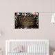 Un panneau d'affichage de 36 par 24 pouces avec un vintage rustique récupéré arrière - plan en bois de grange. Une toupie de fleurs roses foncées et bordeaux foncés se déverse dans les guirlandes verdoyantes argentées et les bouquets floraux romantiques illuminés de bougies, qui débordent de fleurs de pivoines et de pulvérisations d'art floral.