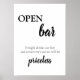 Panneau de Boissons de Bar Ouvert de Mariage Élégant Moderne Calligraphie Noir et Blanc.