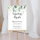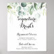 Cette enseigne de boissons de signature de verdure d'eucalyptus d'aquarelle est parfaite pour un mariage rustique. Cette conception artistique présente un feuillage vert d'eucalyptus peint à la main à l'aquarelle, inspirant la beauté naturelle.