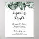 Cette affiche de boissons de signature florale blanche de verdure tropicale est parfaite pour un mariage rustique. Le design présente des bouquets de feuilles de palmier vert avec de jolies fleurs blanches.