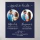 Boissons Signature ! Calligraphie simple mais élégante, ce panneau de bar de boissons signature présente deux cocktails "la mariée" et "le marié", personnalisés avec vos boissons de choix. Personnalisez ce panneau de mariage élégant avec votre photo de fiançailles préférée ou des photos de couple, des noms et des boissons signature ! Vous pouvez également personnaliser les photos de boissons signature avec vos animaux de compagnie préférés pour un mariage d'animaux ! Personnalisez avec des photos de chien ou de chat. COPYRIGHT © 2020 Judy Burrows, Black Dog Art - Tous droits réservés. Affiche de mariage personnalisée avec photo de boissons signature bleu marine.