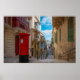 Boîte à lettres vintage rouge à l'ancienne sur rue étroite avec escaliers à La Valette, Malte