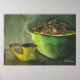 Ne pouvez-vous pas sentir l'odeur des grains de café frais et du café fraîchement torréfié provenant de cette tasse vintage ? Impression originale à l'aquarelle par Paula Atwell.