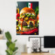 Préparez-vous à une explosion de saveur avec ce hamburger Sonora Spice Bomb. Une épaisse pâte de boeuf épicée, grillée à la perfection salée, est garnie de fromage fondu Oaxaca, de jalapeños rôtis, d'une généreuse salade de chipotle mayo et d'avocat frais. Le tout niché à l'intérieur d'un petit pain grillé et épais de maïs. Un petit drapeau mexicain ajoute une touche festive, tandis qu'un arrière - plan flou évoque les piments et le cilantro frais, complétant ce délice culinaire mexicain.