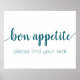 Affiche Bon appétit simple | Turquoise Aqua Any Event Sign